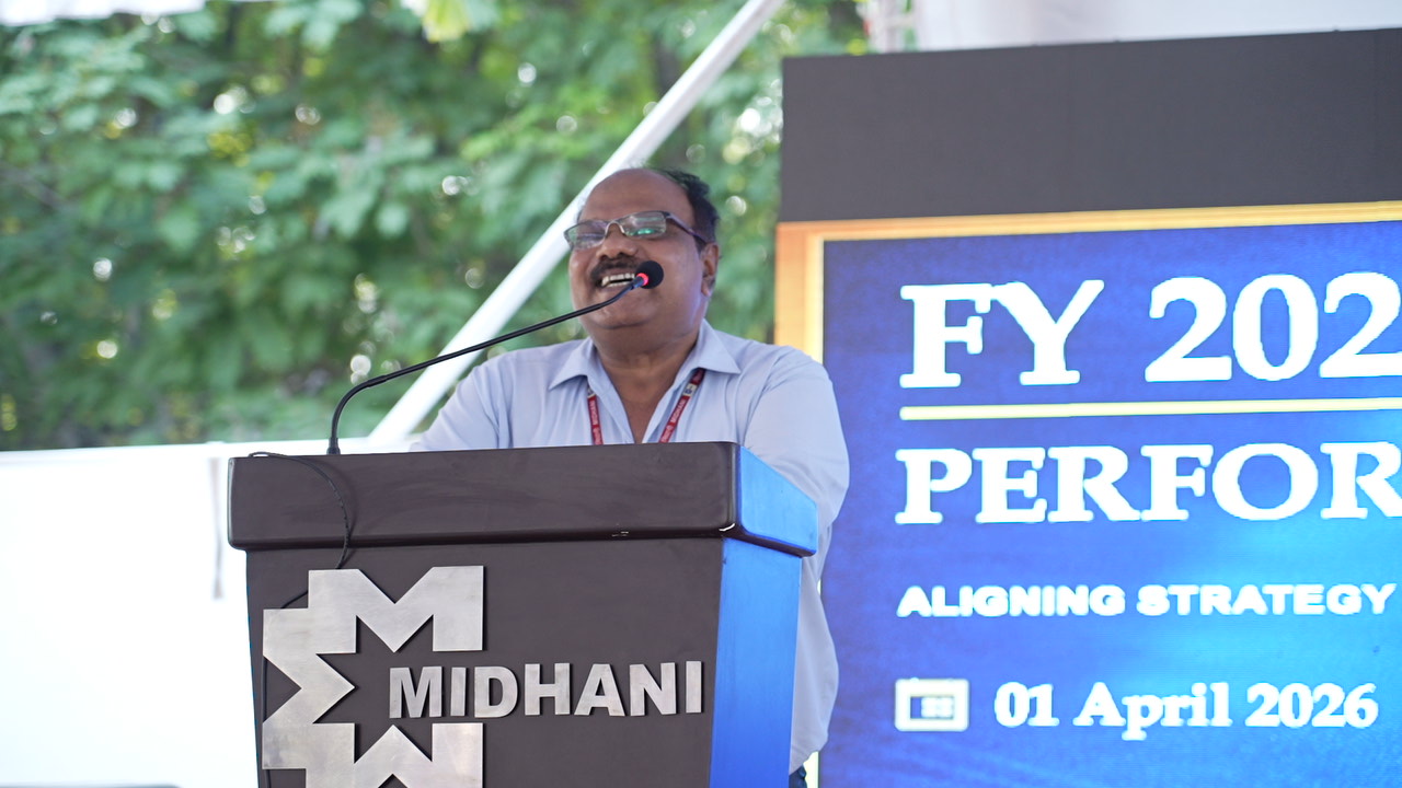 To mark the successful achievement of the production targets for the financial year 2025-26, the employees were addressed by MIDHANI’s Dr. S.V.S. Narayana Murthy (CMD); Mrs. K. Madhubala (DF); Mr. P. Babu (DPM); Mrs. Spoorthi Reddy, IRS (CVO); the General Managers—Mr. K. Anand Kumar [GM (Production)], Mr. V. Rathod [GM (ES)], and Mr. S.K. Dwivedi [GM (Marketing & SBD)]; Mr. Ravichandran (Melting, QC, PAG & AMD); and the President of the MW&SU (Recognized Union), Mr. Srihari. They extended their congratulations to everyone. All departments of the company demonstrated outstanding performance within their respective spheres of work. Consequently, the Directors and other officials heaped praise upon all the departments and encouraged them to continue working with the same level of dedication and sincerity in the upcoming financial year.